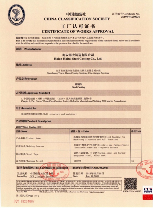 海安海太鑄造有限公司是一家民營法人獨資企業,位于江蘇省海安縣高新技術開發區,公司下設全資子公司江蘇鵬飛海太機械有限公司和上海辦事處,總注冊資金2.2億人民幣。距啟揚高速(S28)海安西出口3公里,距上海機場、南京機場僅2小時車程。公司占地面積99800多平方米,現有建筑面積53600多平方米,擁有2個鑄鋼生產車間。2014年投資1.2億,新建2萬平方米的金工車間,并與2015年3月投入生產。公司擁中高級職稱技術管理人員56人。2017年繳納國地兩稅3300多萬元。